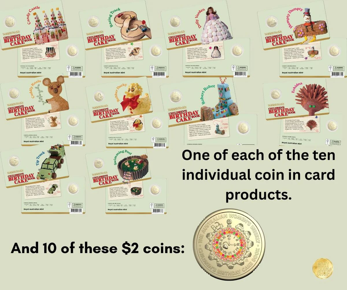 The Australian Women’s Weekly Birthday Cake Book is a cultural icon. For decades, these cakes have been the centrepiece of local celebrations. They represent a unique part of our shared history. To celebrate this legacy, a new collection of coloured coins has been released. This bundle, The Australian Women’s Weekly Birthday Cake Book bundle, offers a creative way to remember these famous designs.